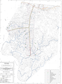 Carte scannée du scénario 2 de localisation des aménagements hydrauliques de la phase d'étude des scénarii sur la commune de Mana, secteur de Couachy.