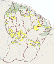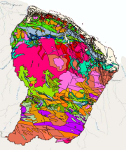 Couche d'information vectorielle de la carte géologique de la Guyane de 2001 (BRGM) initialement co-financée par la Région Guyane, reprojetée (en RGFG 95 UTM 22 Nord) et retraitée en 2017 (CTG / GUYANE SIG).
