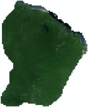 A seamless, uniform mosaic derived from 2.5-m Spot 5 satellite imagery, providing a nationwide or regional basemap for French Guiana. The images were acquired from 4 September 2007 to 16 November 2007 and 16 July 2008 to 2 November 2008. The colour basemap offers high geometric accuracy. The estimated horizontal precision is about 10 meters. The colours faithfully reflect true landscape colours. Suitable for working at scales up to 1:10 000.