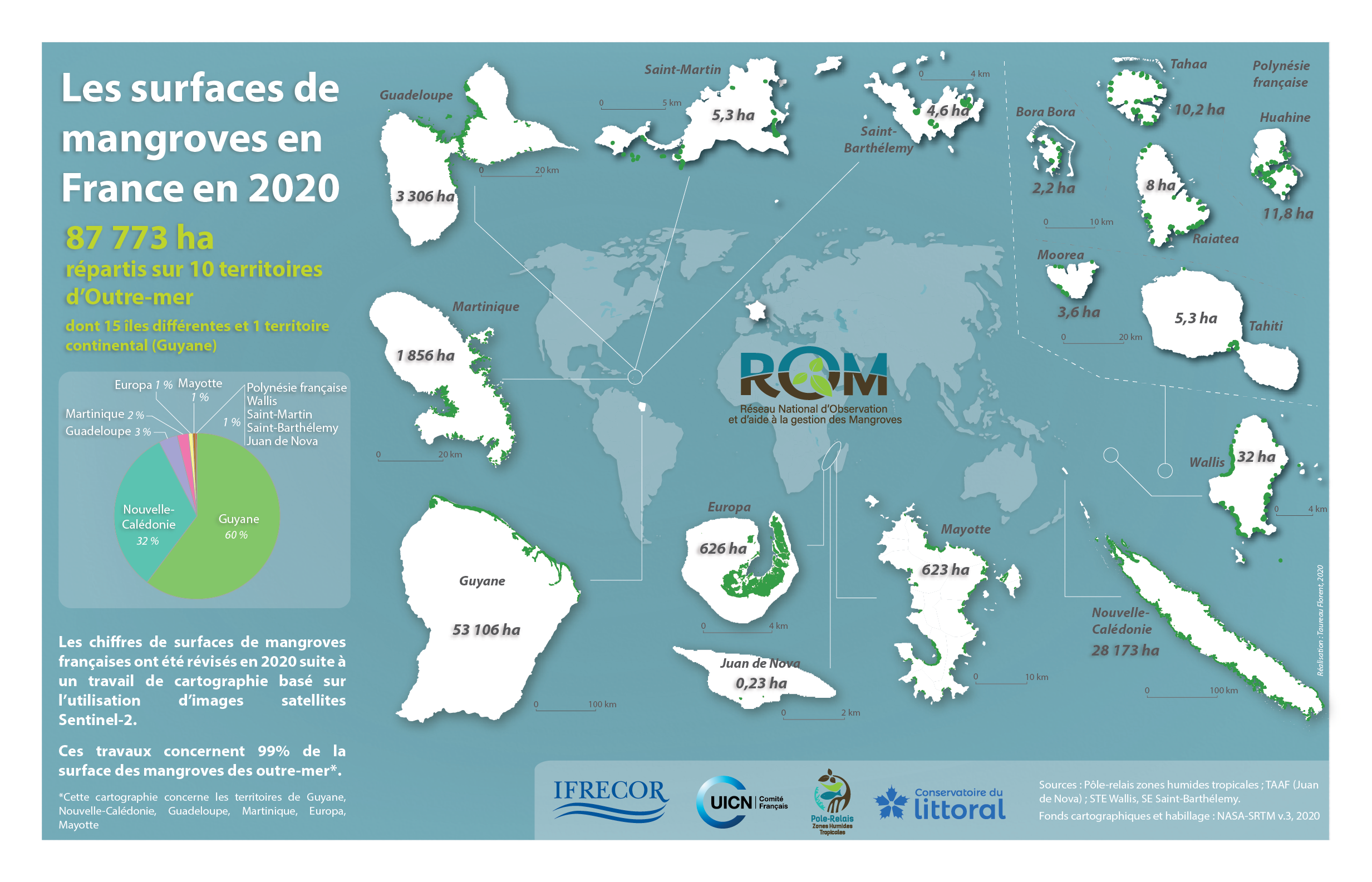 A l’occasion de la Journée Internationale des Mangroves, dimanche 26 juillet 2020, une nouvelle cartographie des mangroves a été publiée. Produite notamment à partir d’images satellites du capteur Sentinel, elle permet d’obtenir une situation actualisée des mangroves outre-mer.